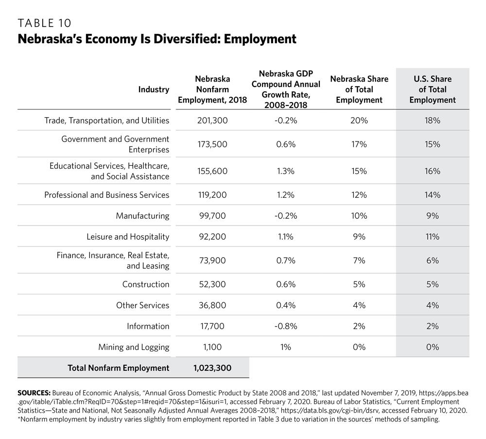 9 Nebraska Department of Economic Development, “Nebraska’s Opportunity Economy,” June 2018, https://opportunity.nebraska.gov/files/research/bchmrk07.pdf.
