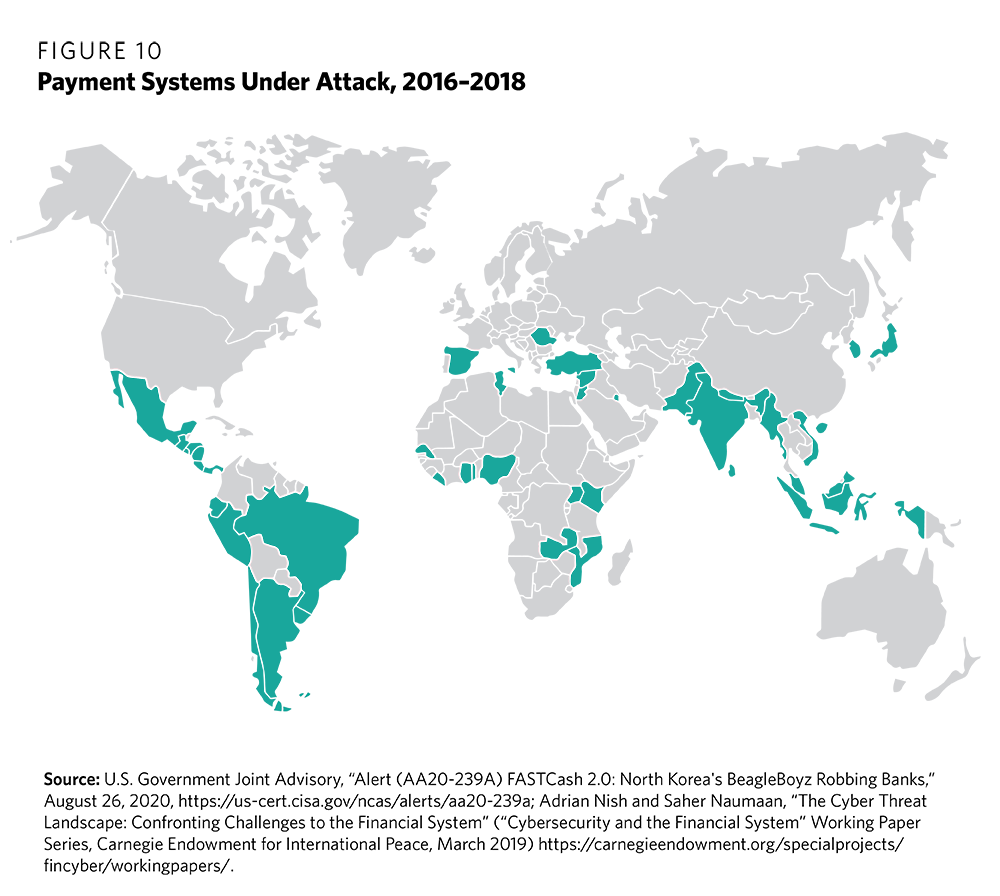 Malicious actors are taking advantage of this digital transformation and pose a growing threat to the global financial system, financial stability, and confidence in the integrity of the financial system. Malign actors are using cyber capabilities to steal from, disrupt, or otherwise threaten financial institutions, investors, and the public. These actors include not only increasingly daring criminals,3 but also states and state-sponsored attackers. North Korea, for example, has stolen some $2 billion from at least thirty-eight countries across five continents over the last five years alone,4 more than three times the amount of money it was able to generate through counterfeit activity over the previous four decades.5 Other state-sponsored actors have targeted financial institutions, for example, with massive distributed denial-of-service (DDoS) attacks.6 More dangerous attacks and ensuing shocks should be expected in the future. Most worrisome are incidents that corrupt the integrity of financial data, such as records, algorithms, and transactions; few technical solutions are currently available for such attacks, which have the potential to undermine trust and confidence more broadly.7