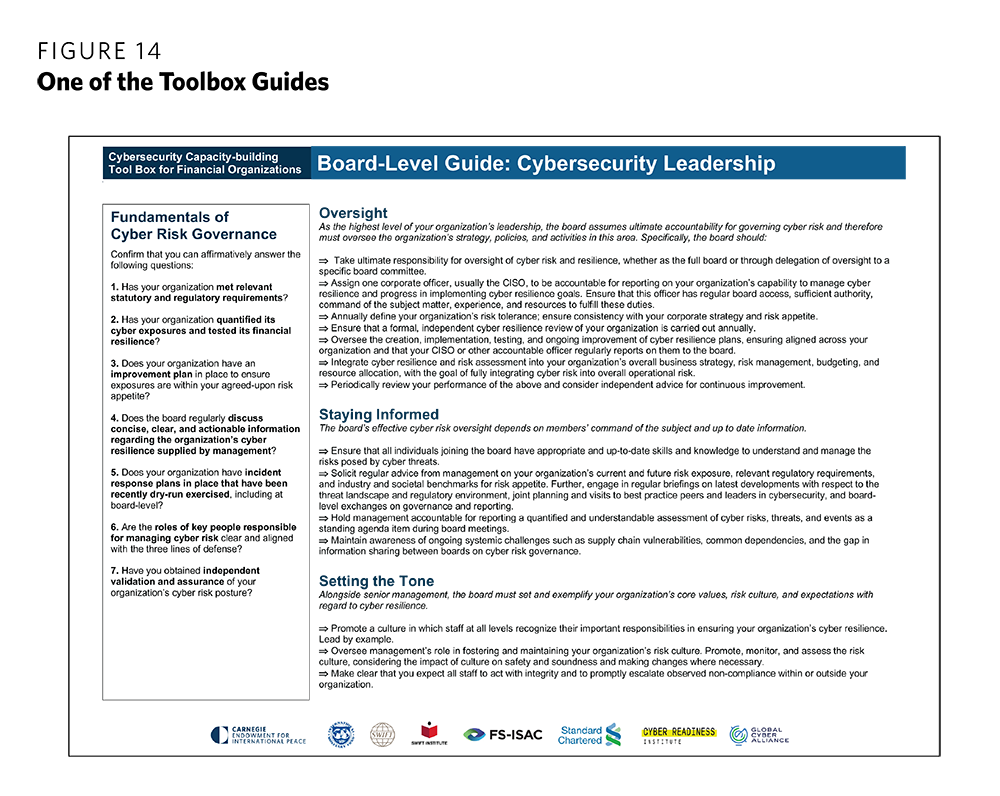 Only a few months earlier, in 2015, the Carnegie Endowment for International Peace had launched an initiative to better protect the global financial system against cyber threats.4 Our first step was to develop a proposal for the G20 to launch a work stream dedicated to cybersecurity in the financial sector.5 In March 2017, the G20 Finance Ministers and Central Bank Governors outlined an initial road map to increase the cyber resilience of the international financial system. In the wake of the Bangladesh incident, Carnegie expanded its work, complementing the G20 project with the development of an action-oriented, technically detailed cyber resilience capacity-building tool box for financial institutions. Launched in 2019 in partnership with the IMF, SWIFT, FS-ISAC, Standard Chartered, the Global Cyber Alliance, and the Cyber Readiness Institute, this tool box is now available in seven languages.6 And we are continuing to track the evolution of the cyber threat landscape and incidents involving financial institutions through a collaboration with BAE Systems.7